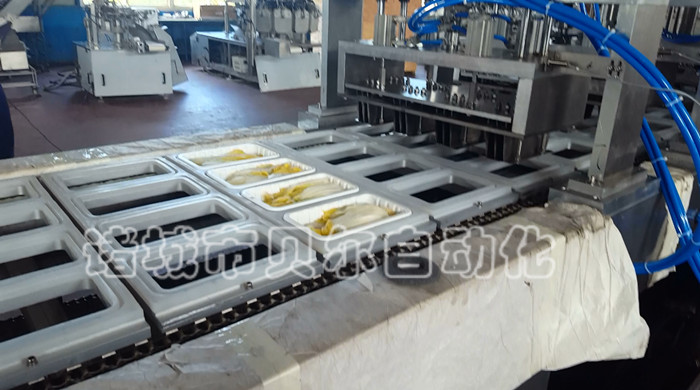 一、產品簡介 我廠作為專業的封碗封盒包裝機廠家,自動封盒包裝機是我廠2002年開發的產品,經過十六年的研發與完善,目前已經申請六項國家專利,該機能夠自動落盒,將塑料盒準確落入模具中,自動打印生產日期及批號,自動抽真空包裝,或者抽真空后充入N2、02、CO2混合氣體。貝爾盒式包裝機以其成熟技術,高端原裝進口主機配件,高效使用性能,